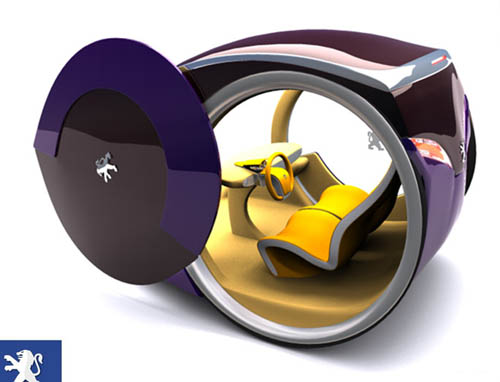 futuristic-car-peugeot, yg menarik roda menjadi kerangka mobil dan pengaman sekaligus.