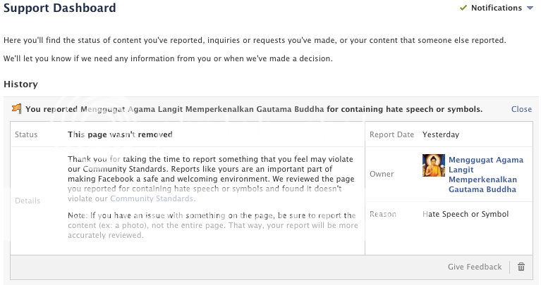 Sama juga dapat report begitu. Kurang spesifik katanye... Mungkin admin facebook ga ngerti bahasa indonesia. Jadi ga ngerti isinya apa yang dibahas disitu.