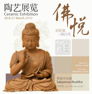 Pameran arca Buddha akan dipajang 20-21 Maret 2010 di Nalanda Centre, Sri Serdang. Pengenalan seni pembuatan keramik langsung demonstrasi dua kali sehari untuk publik yang tertarik untuk mencoba tangan mereka di pencetakan. Masuk ke pameran dan hidup demonstrasi adalah gratis. Hubungi Sekretariat di 03-8938-1500, Mr Wong Kin Yap di 012-297-7479, atau kunjungi http://nalanda.org.my/