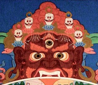 Kalachakra yang suka mengirimkan kado (hukuman / kutukan) itu Anda sebut sebagai Dharmapala? Oh ya, saya ingat. Dharmapala itu adalah makhluk yang senang disembah-sembah dengan darah menstruasi, bukan? Ya, Dharmapala dan Kalachakra saya sebut dengan setan. Sangat pantas disebut setan, terutama setelah melihat penampakannya yang seperti gambar di bawah ini...