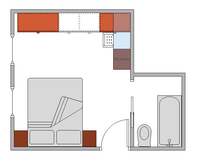 untuk denah kamarnya, saya buat uk. 4 x 3.5 meter