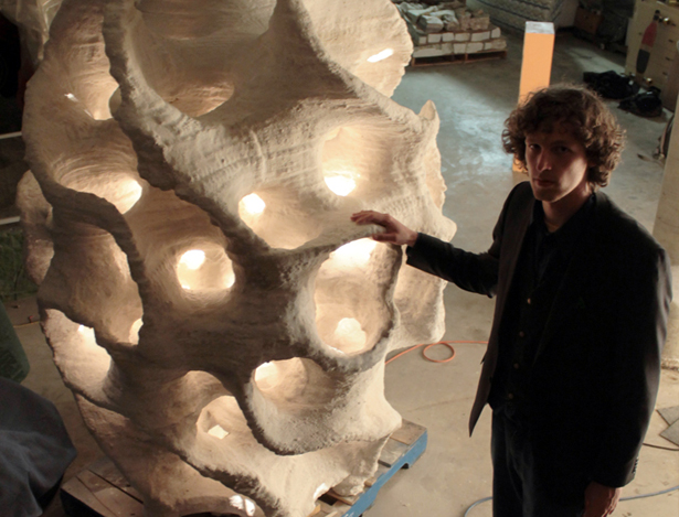 The D-Shape building process is similar to the "printing" process because the system operates by straining a binder on a sand layer (more on materials in the next section). This is similar to what an ink-jet printer does on a sheet of paper. This principle allows the architect to design fantastically complex architectural structures.