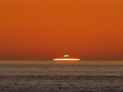 OOT dikit, soal warna langit dan hubungannya dengan matahari, ini ada fenomena unik, namanya green flash.