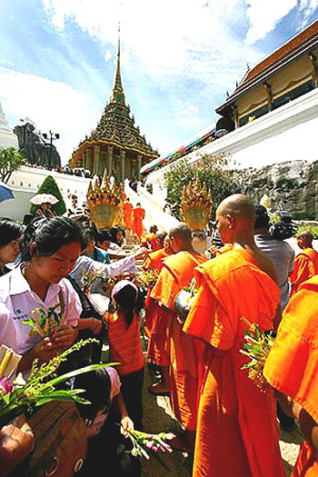 cara menerima persembahan bunga dengan patta itu meniru dari vihara di Thailand tetapi saya juga kurang mengetahui apakah itu merupakan tradisi Thai