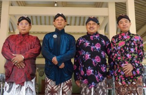 Secara keseluruhan seperangkat pakaian tradisional yang dikenakan laki-laki yogyakarta terdiri atas tutup kepala atau blangkon, surjan, kain batik atau jarik serta alas kaki.