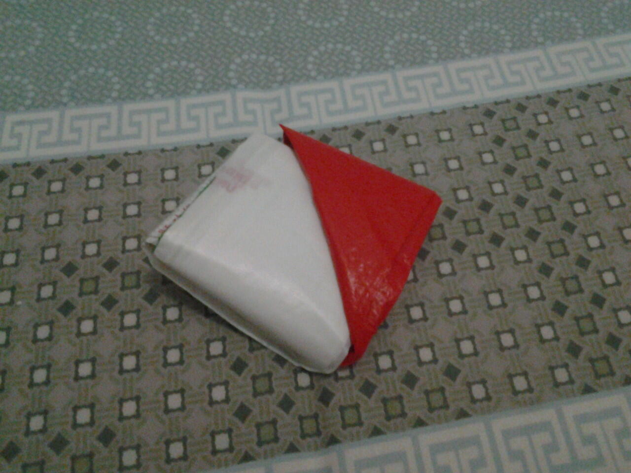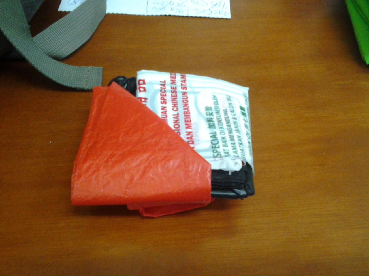 Lipatan yinyang ini untuk memudahkan belanja di banding lipatan segitiga kantung plastik untuk di simpan di rumah