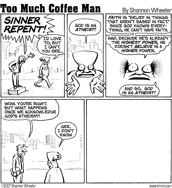 A: Wow. You're right. But what happens once we acknowledge God's Atheism?