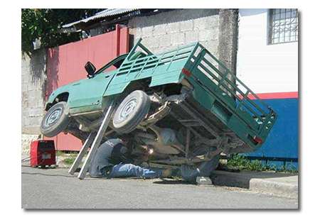"Of course I know it's not safe to do electrical work around water...that's why I'm standing safely above it on this metal ladder."