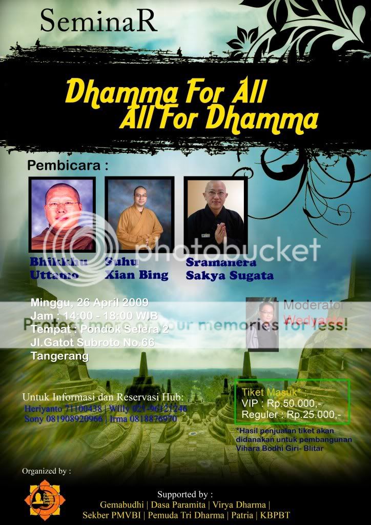 Via mesage ini, disampaikan undangan seminar Dhamma yang akan diselenggarakan pada hr Minggu, 26 April 2009.